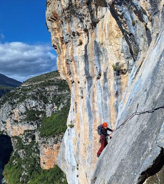 Ce Verdon m'a tant fait rêver que j'aime partager son rocher à la fois doux et exigeant. Notre stage d'escalade vous permettra de gravir des lignes tranquilles, spectaculaires, somptueuses... dans un niveau minimal de 5c.