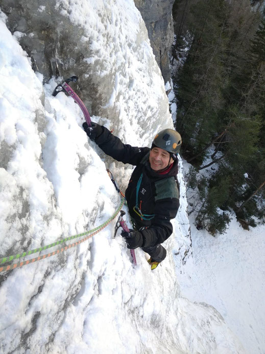 Grimper une cascade gelée c'est accepter la part d'ombre de l'escalade : Ambiance austère, subtilité des ancrages, jeux d'équilibres et maîtrise des émotions offrent à l'audacieux une expérience sportive et esthétique mémorable.