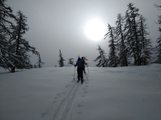 Dans nos montagnes alpines, les pentes sont plus longues et continues que dans le Jura qui lui est bosselé par ex. Donc on utilise des peaux de phoque pour monter, les descentes sont plus longues et on peut même y apprivoiser le télémark.